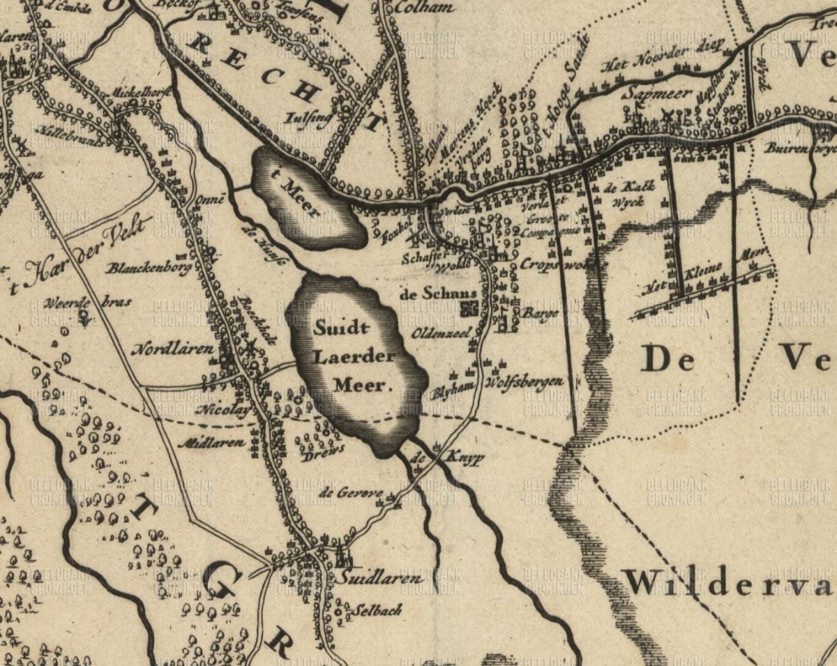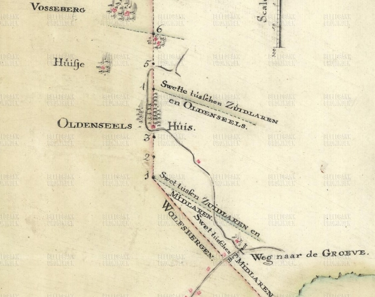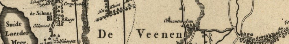 Huis van de familie Oldenzeel Zuidlaarderveen op een kaart uit 1716